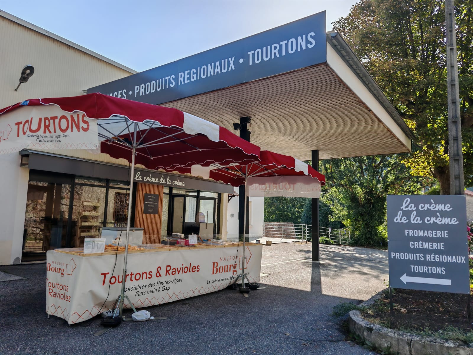 Devant la boutique, les tourtons Maison Bourg faits mains offrent une savoureuse spécialité locale, sucrée ou salée.